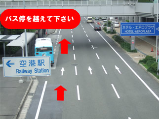 図3 バス停を越え前進して下さい。「空港駅」の標識を越える。