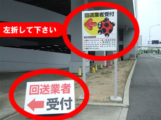 図4 「回送業者受付」カンバン(てんとう虫の絵)を左折して下さい。